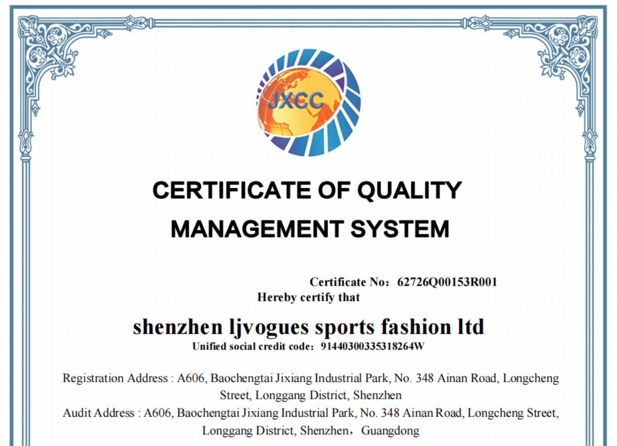 Today, I am incredibly proud to announce a major milestone for our company and our global partners: As of March 2, 2026, Shenzhen Ljvogues Sports Fashion Ltd has officially been awarded the ISO 9001:2015 (Quality Management System) and ISO 14001:2015 (Environmental Management System) dual certifications.